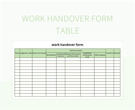 Work Handover Form Table Excel Template And Google Sheets File For Free from slidesdocs.com